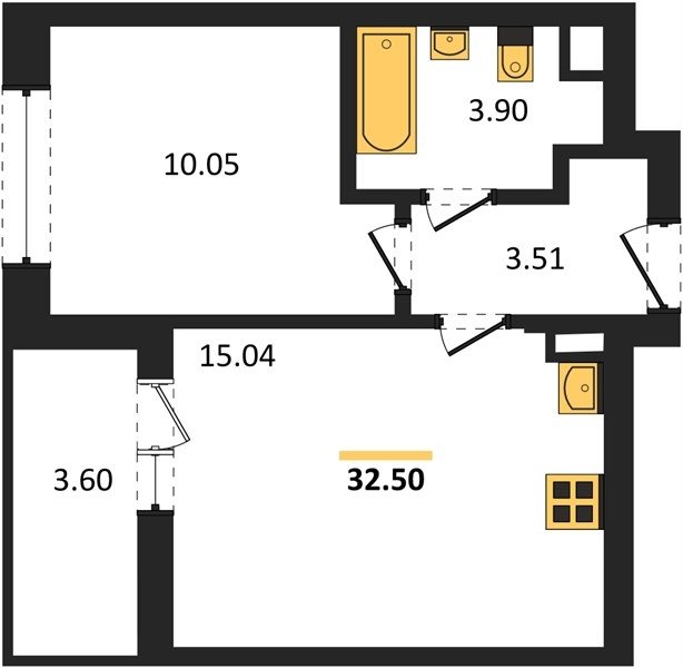 Площадь от 32.5 м2