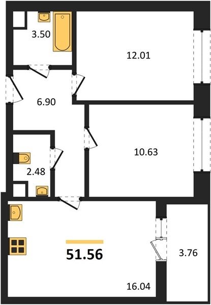 Площадь от 49.5 м2