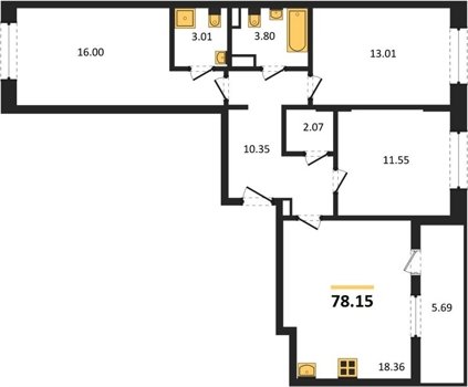 Площадь от 78.1 м2