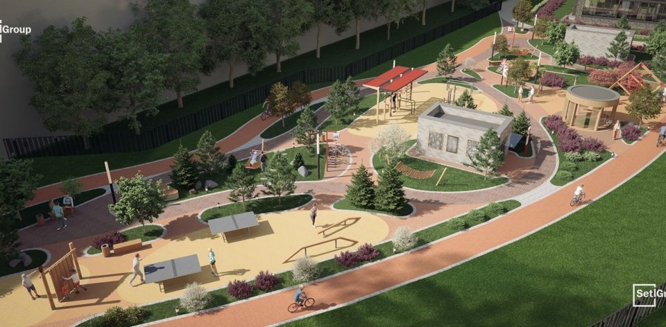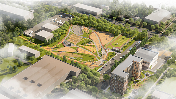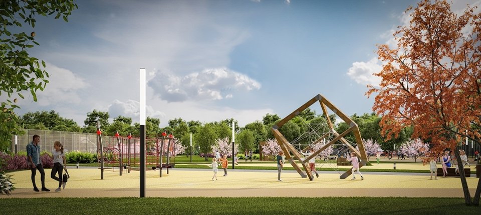 Проектом предусмотрен уникальный парк «Город Спорта» площадью почти 11 тыс. кв. метров. Это универсальная многофункциональная площадка, которая предполагает более 20 видов физической активности.