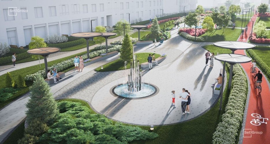 Грандиозный проект по масштабу и наполнению всего в 3-х км от центра со всей необходимой инфраструктурой, благоустроенной территорией площадью более 30 тыс. кв. м, прогулочным променадом, площадями и фонтанами.