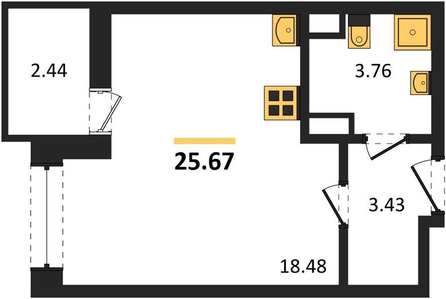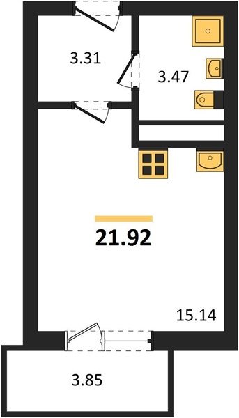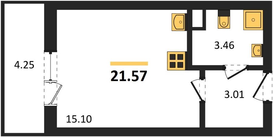 Площадь от 21.6 м2