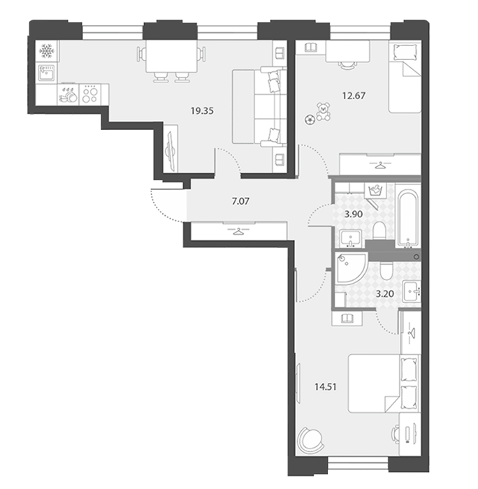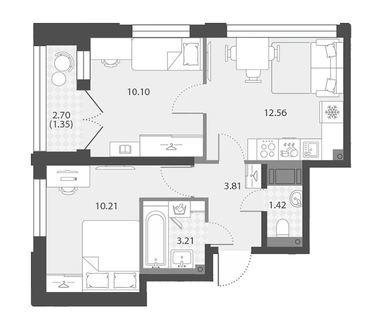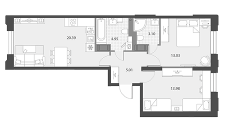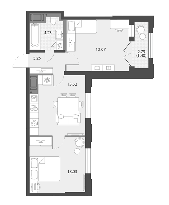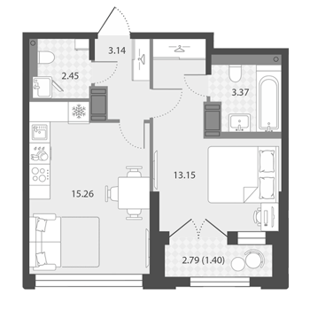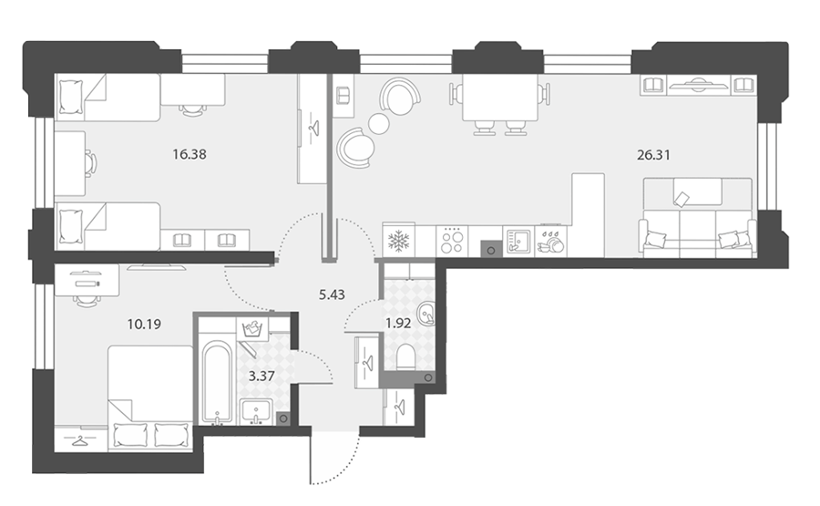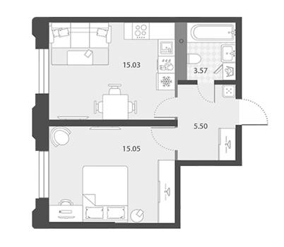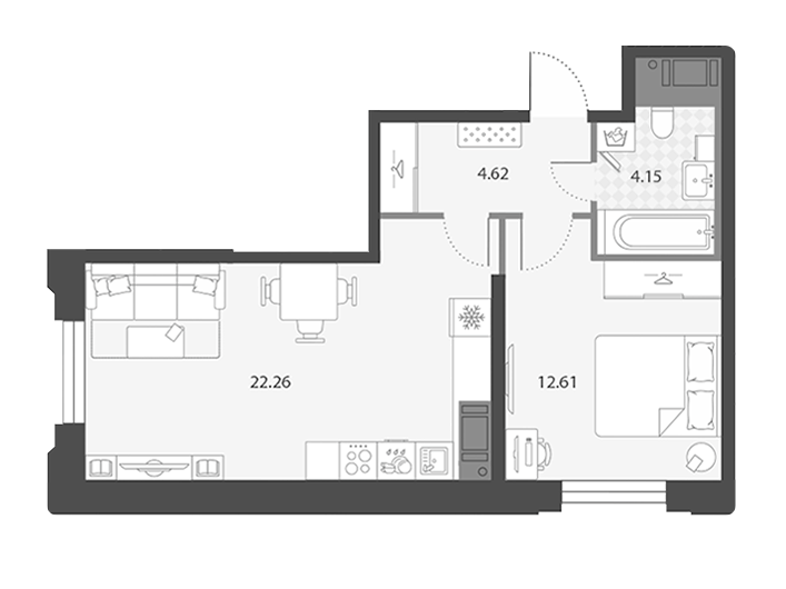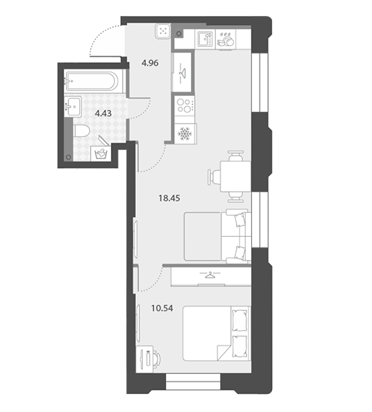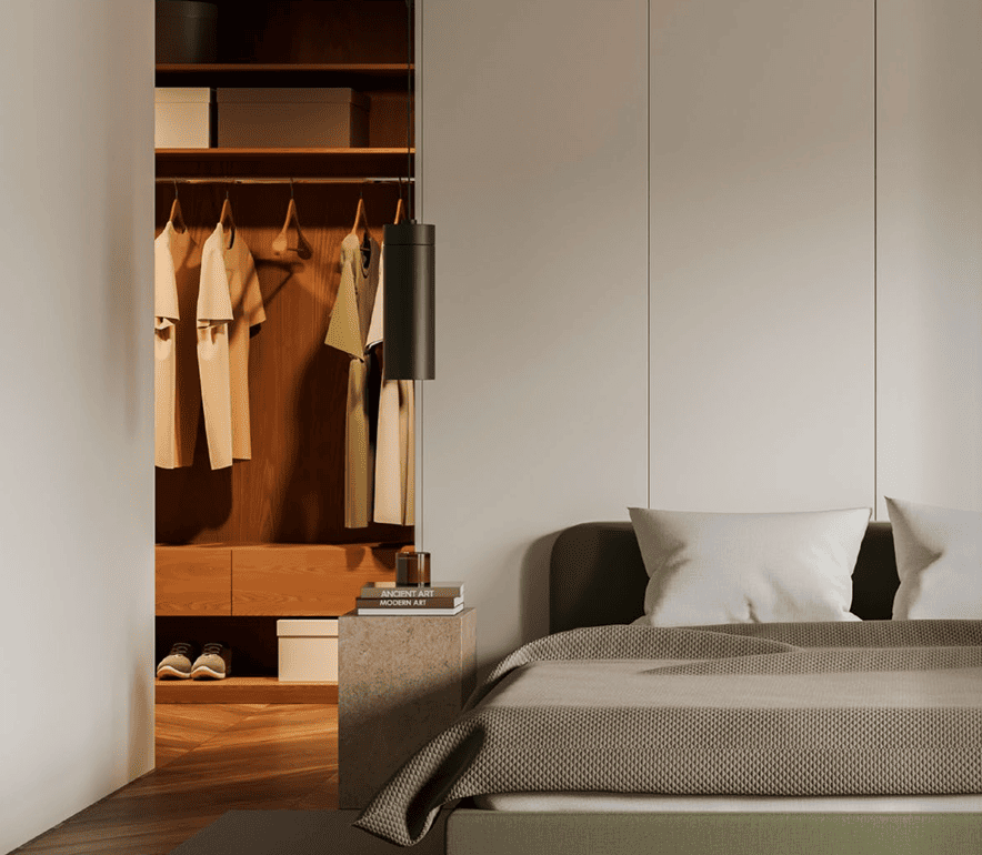 Это приватность, доступная даже в однокомнатных квартирах. Отдельная ванная и гардероб обеспечивают удобство, делая ваш отдых максимально комфортным. Роскошное решение для тех, кто ценит личное пространство, что особенно актуально для семей с детьми.